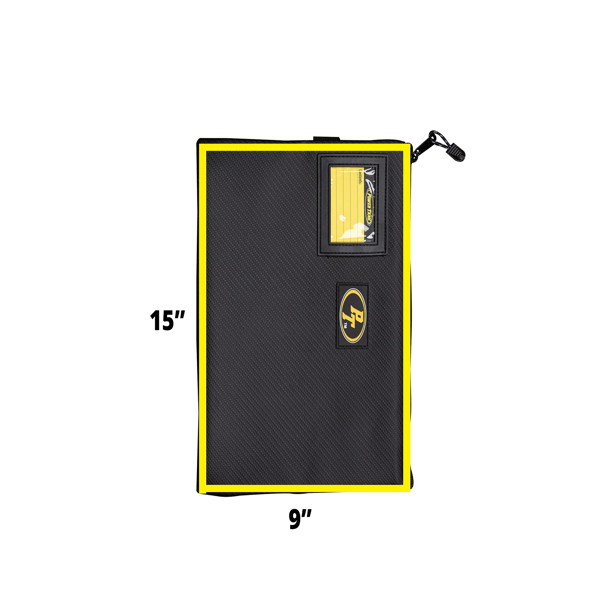 This Sand Flat Storage Bag is perfect for safe storage of tire inflator gauges, shock inflator tools, and anything you want protected and kept clean. The new ballistic nylon outer shell looks and feels fantastic and is abrasion resistant for more durability. This 15x9 in flat pouch features padded sides and an inner divider wall with a bright yellow interior to make it easier to find your gear. A finger tab on one end lets you put a carabiner on it. We've also added a cardholder to the outside so you can write down the contents or slip in your business card in case it gets lost. Comes with one contents card. More can be ordered here.
