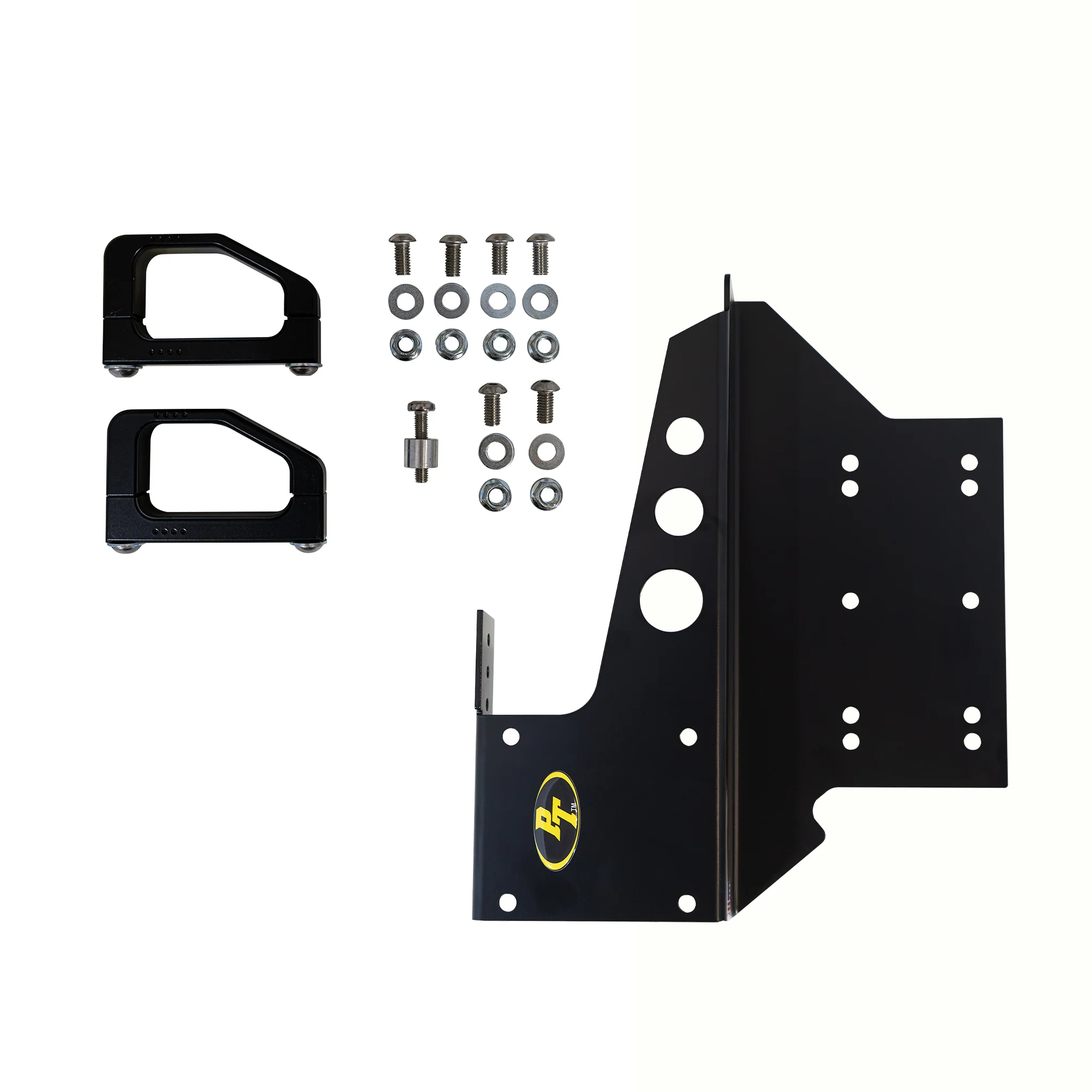 It clears the factory Bronco Raptor cross bracing which gets in the way of our standard Bronco Plate mount. Like the Bronco Plate mount, there are provisions for a Quick-Release Bracket to mount a fire extinguisher, Power Shot, or Pro Eagle CO2 Jack on top.