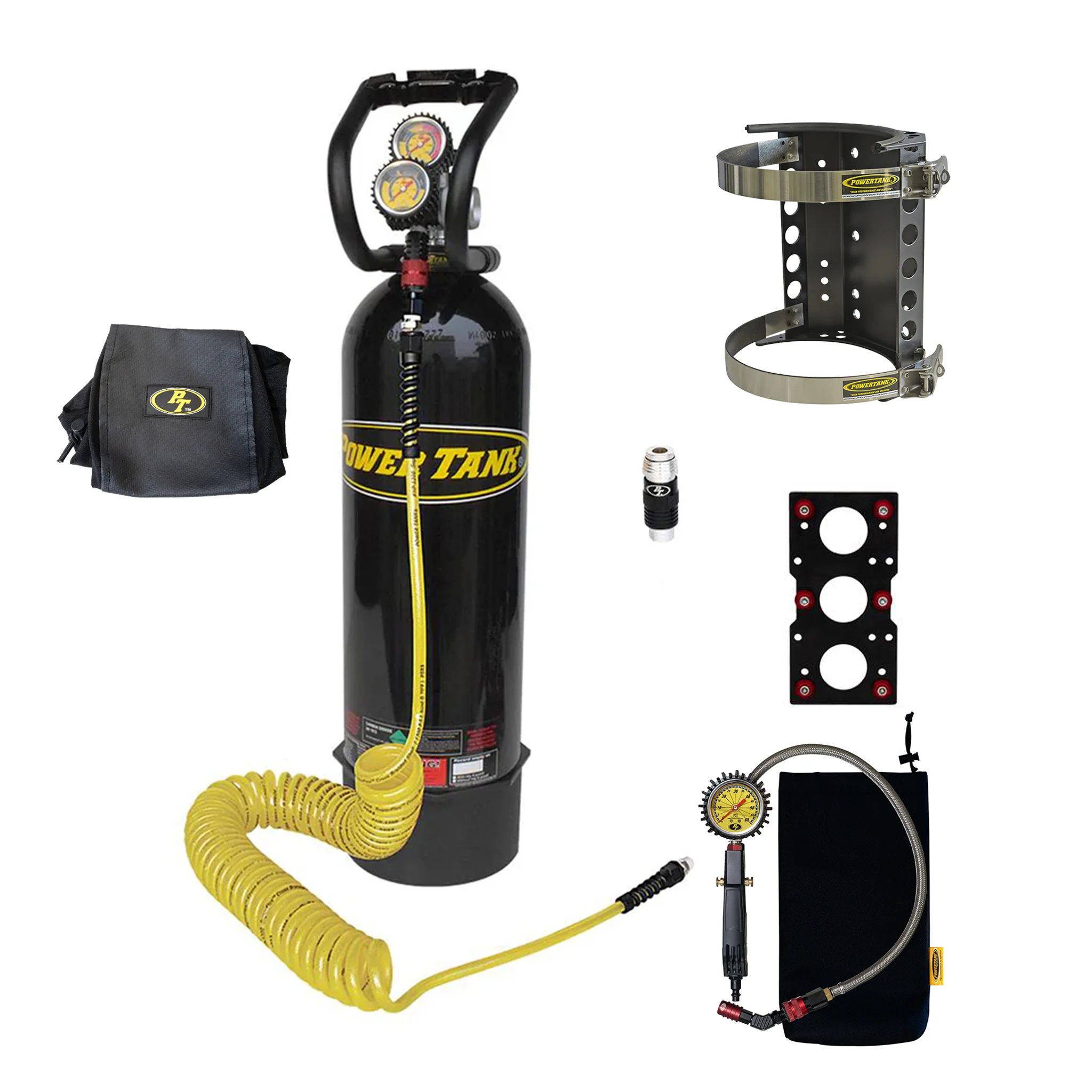 This Power Plate Edition Power Tank includes everything you need to run air tools with our advanced universal safety Super Coupler and air up tires through a dedicated HD Tire Inflator with Gauge. It also includes includes the Power Plate, Super Bracket, and hardware for a complete mounting system. Bedside rack organizer sold separately.