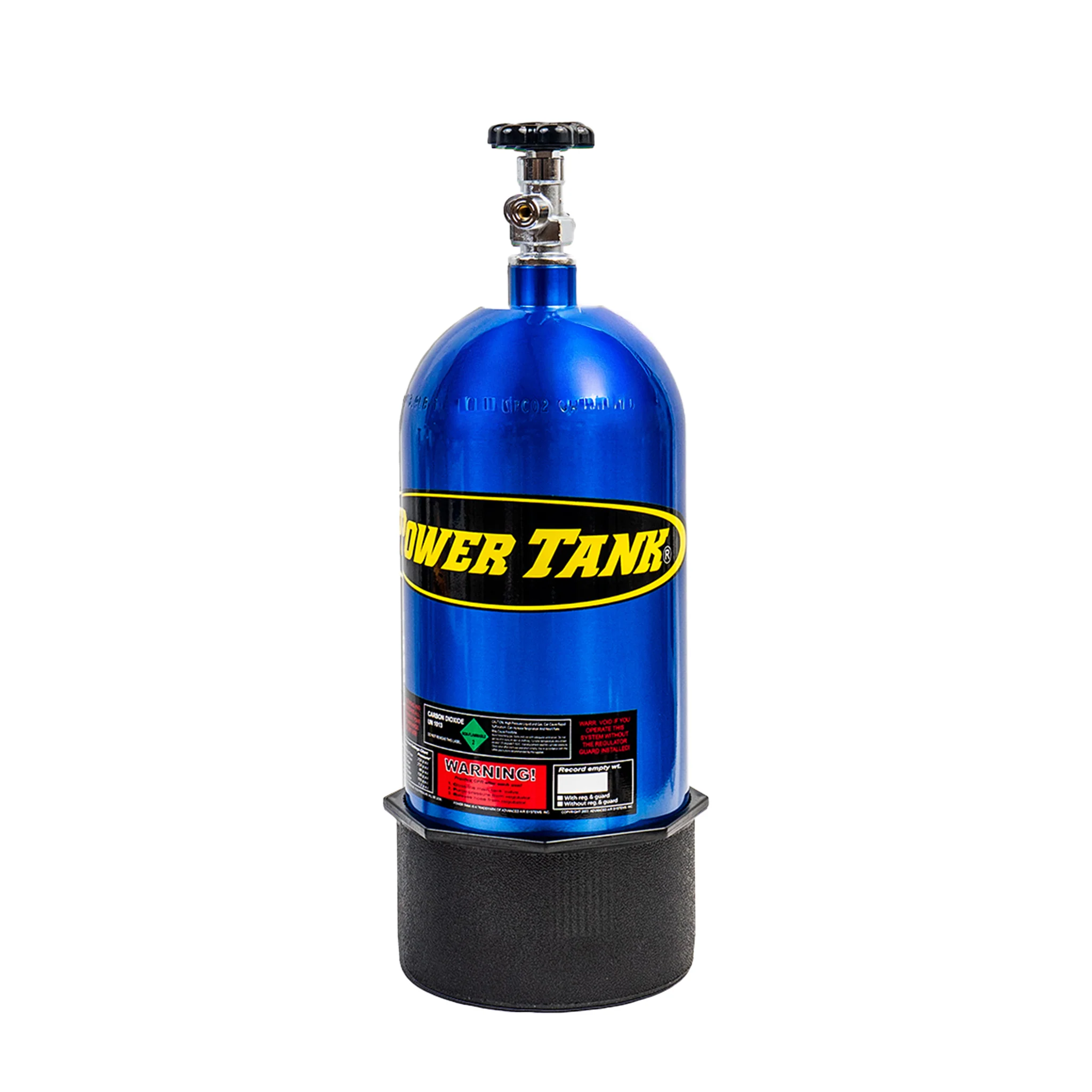 A Power Tank is the fastest and most powerful portable air solution. With the power of CO2 you can air up faster, reseat bigger tires (tested up to 46 in.) safely, and run air tools at full power. To see what Power Tank performance looks like for your tire size, check out our tire air up chart. Based on tire size and amount of air you are adding, it will tell you how many tires you can fill on one tank and how quickly you can do it. As an example, you can air up from 15 psi to 25 psi on a 35 in. tire in 19 sec. and you can air up 30 tires before needing to refill your 10 lb. Power Tank! The same size tank can also remove 360 lug nuts using a 1/2 in. impact wrench before empty. When it's empty, take your tank to a local fire extinguisher service shop, welding supply store, or beverage carbonic shops, and have it refilled for about $15-$25.